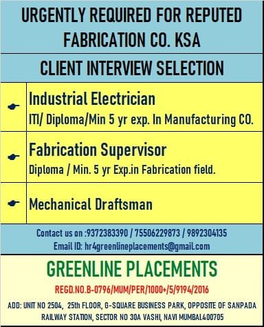 URGENTLY REQUIRED FOR REPUTED FABRICATION COMPANY KSA