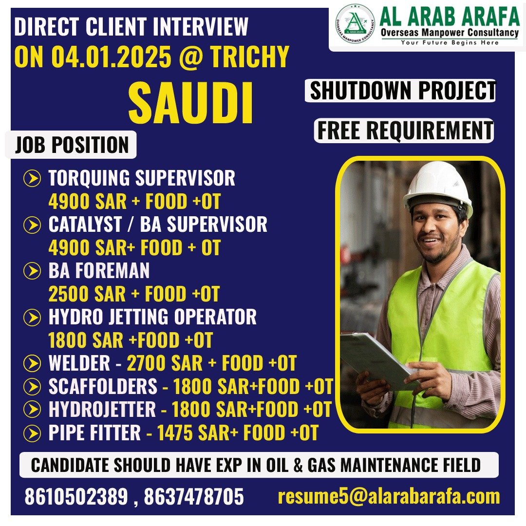 DIRECT CLIENT INTERVIEW ON 04.01.2025 @ TRICHY