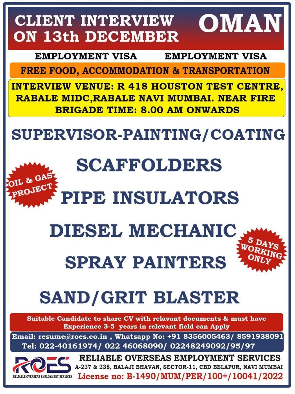 Urgent Requirement for DUBAI ARABIAN INTERNATIONAL COMPANY – Client Interview At Jamshedpur on 16 DECEMBER 2024