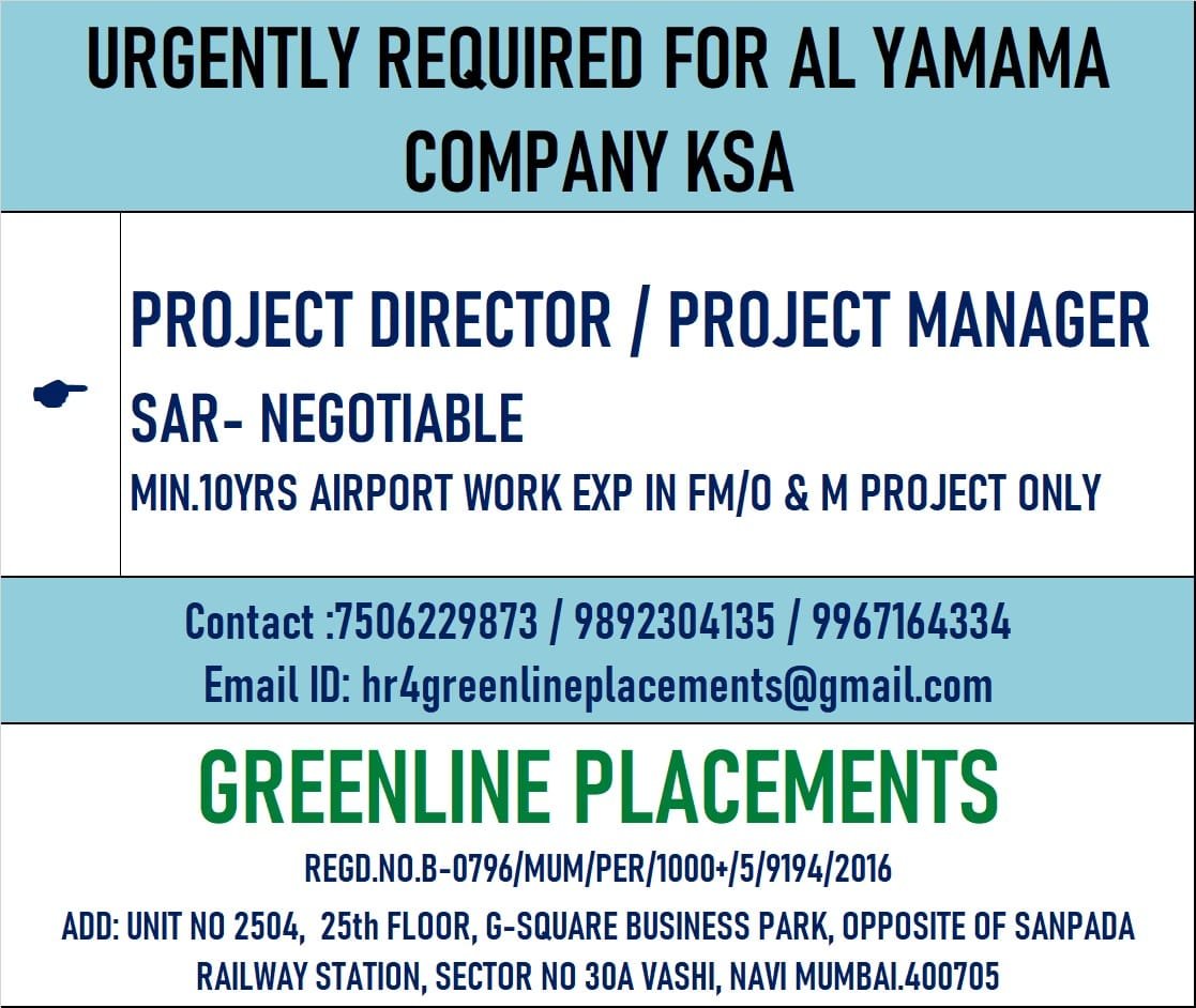 URGENTLY REQUIRED FOR AL YAMAMA COMPANY KSA
