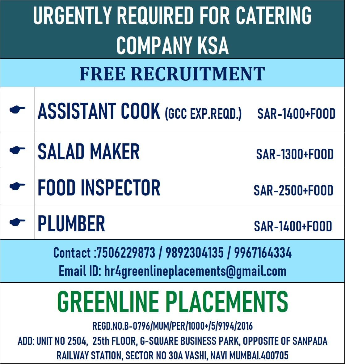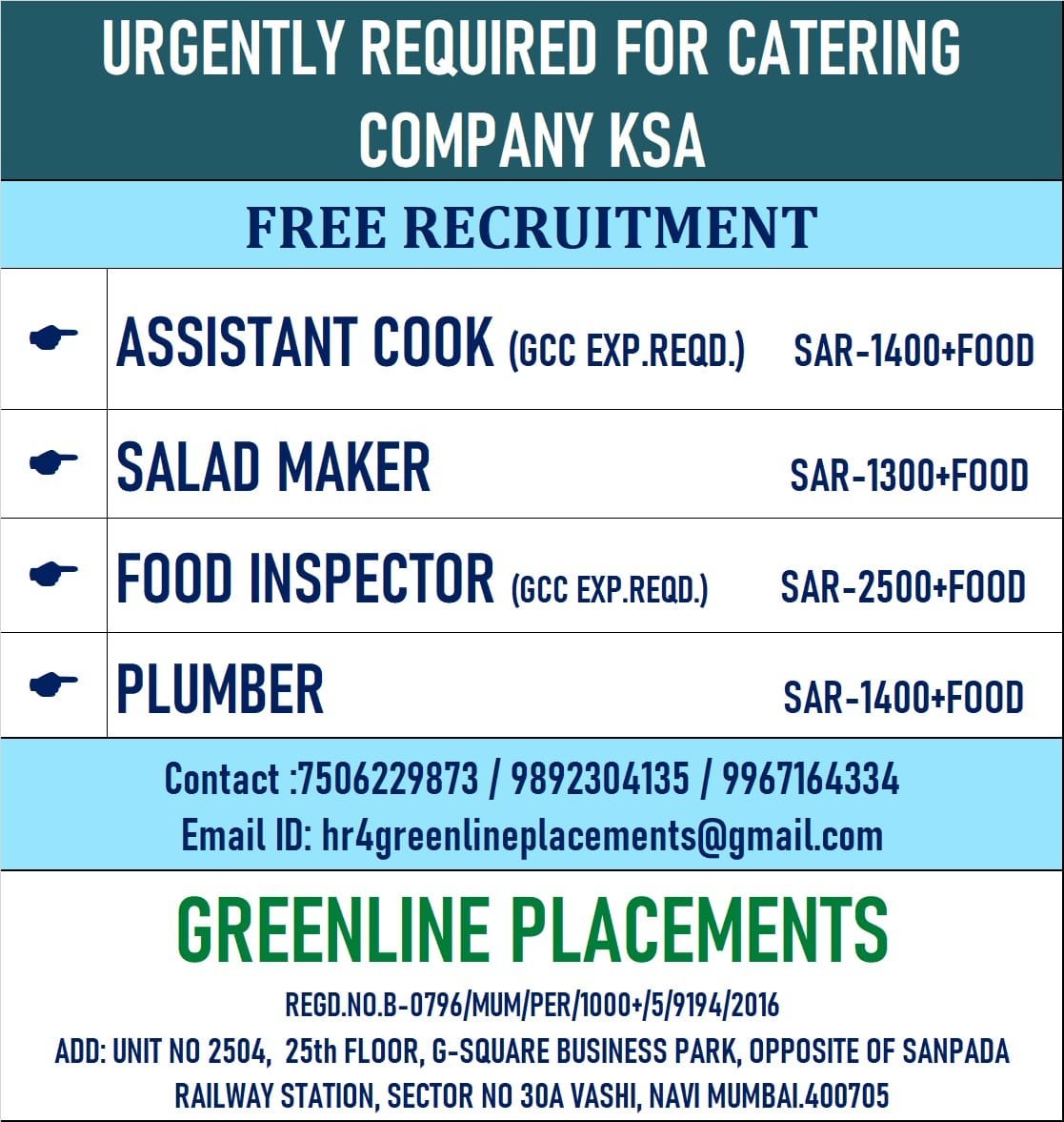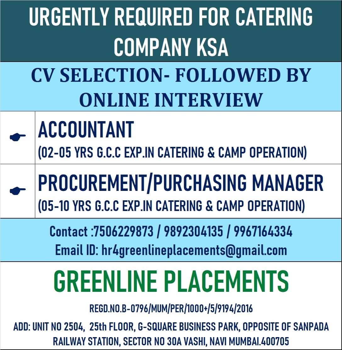 URGENTLY REQUIRED FOR CATERING COMPANY KSA