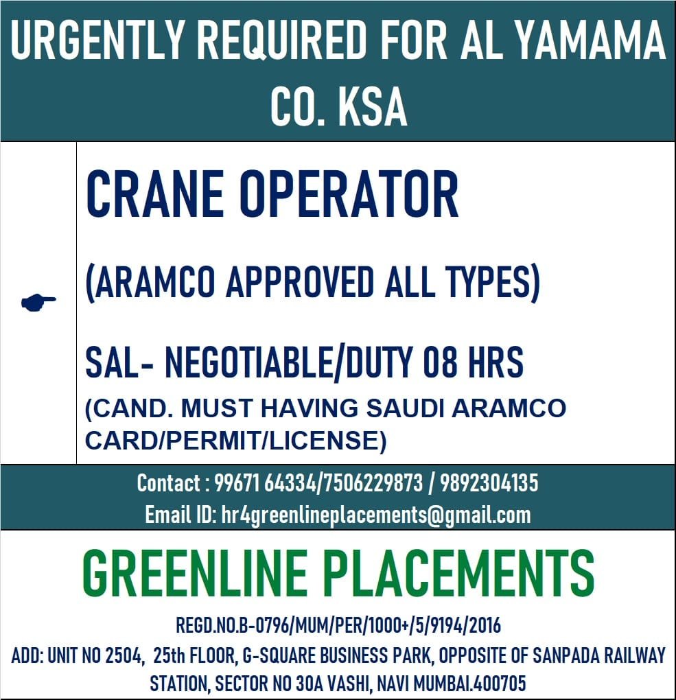 URGENTLY REQUIRED FOR AL YAMAMA COMPANY KSA