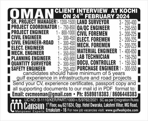 Urgent Hiring For Kuwait / Project /Long Term Project
