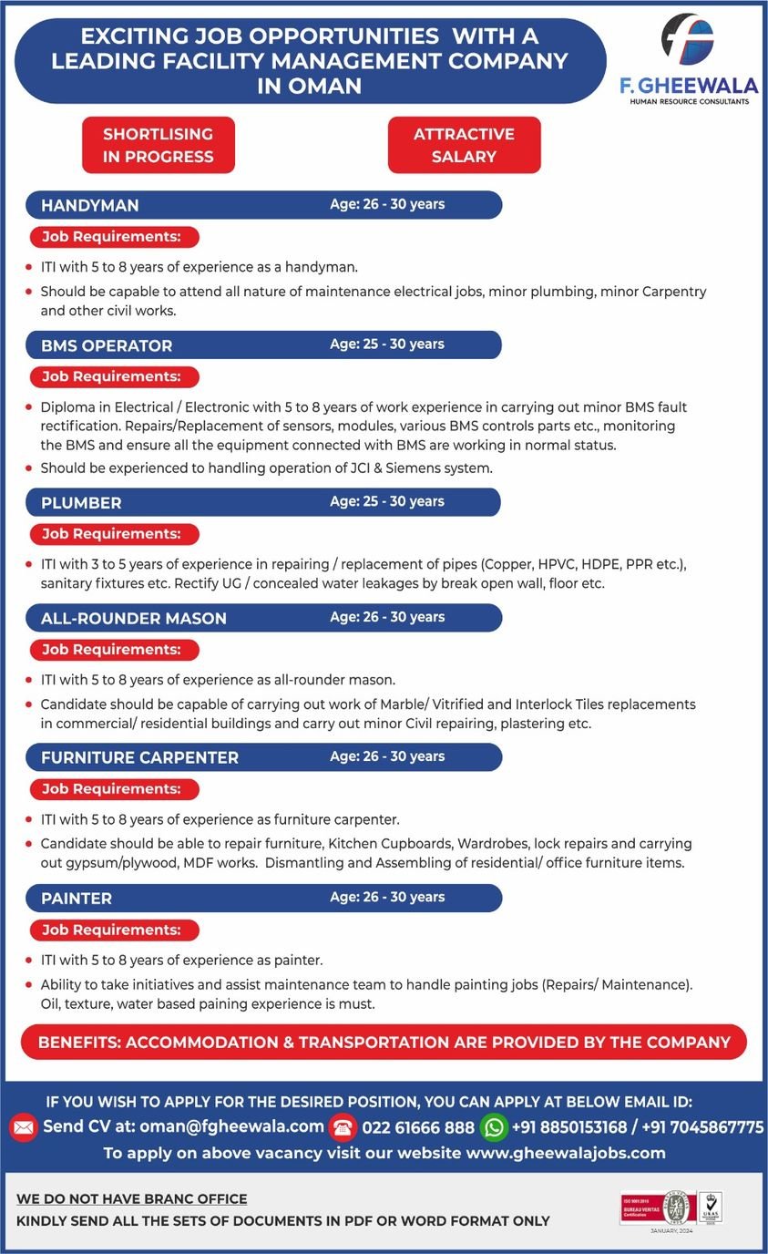 Jobs in Oman – Recruitment for a leading facilities management company