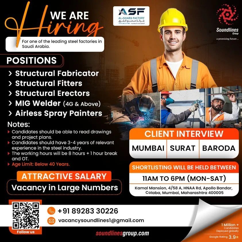 URGENTLY REQUIRED FOR A STEEL PLANT COMPANY- SAUDI ARABIA.