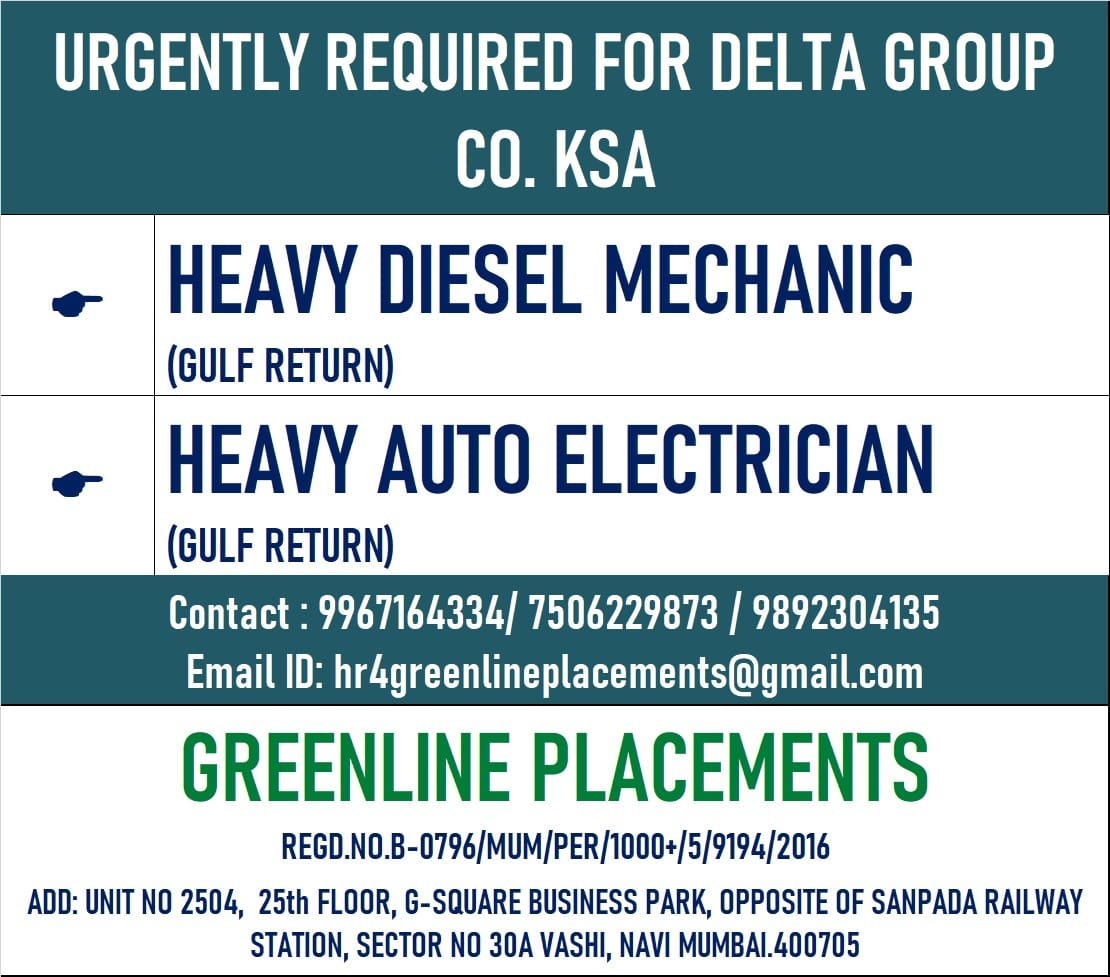Contact : 9967164334 / 7506229873 / 9892304135 Email ID: hr4greenlineplacements@gmail.com