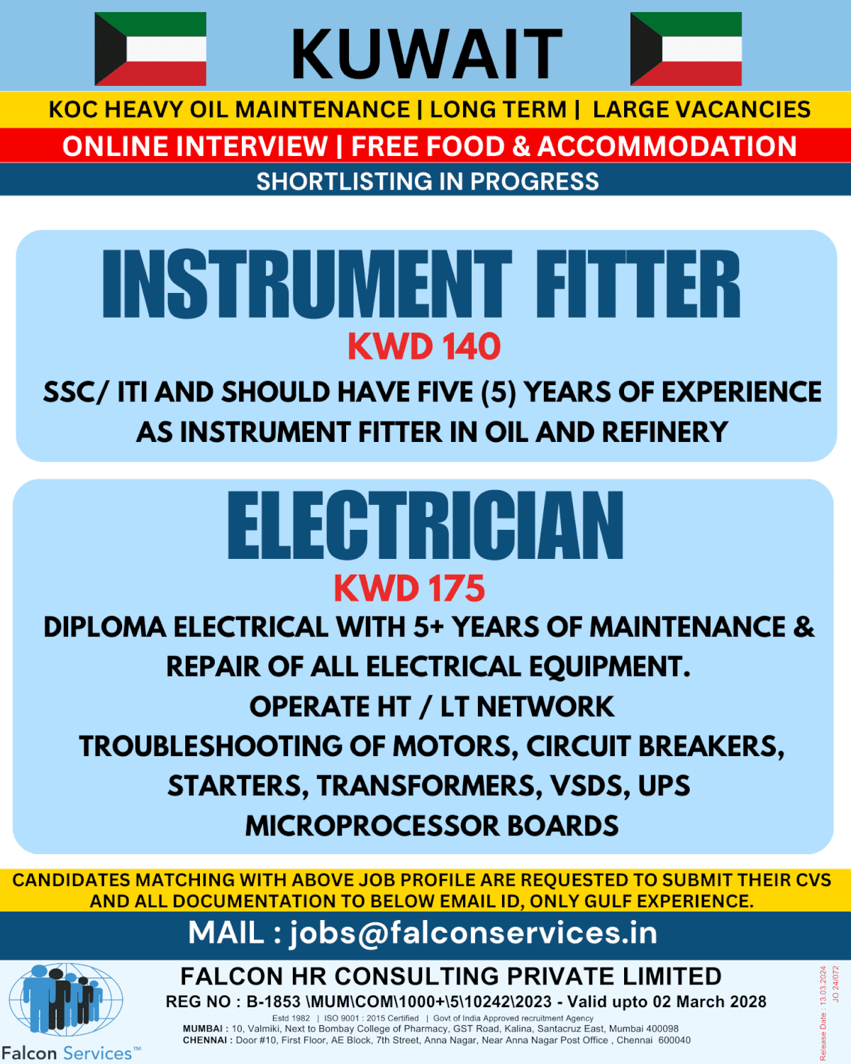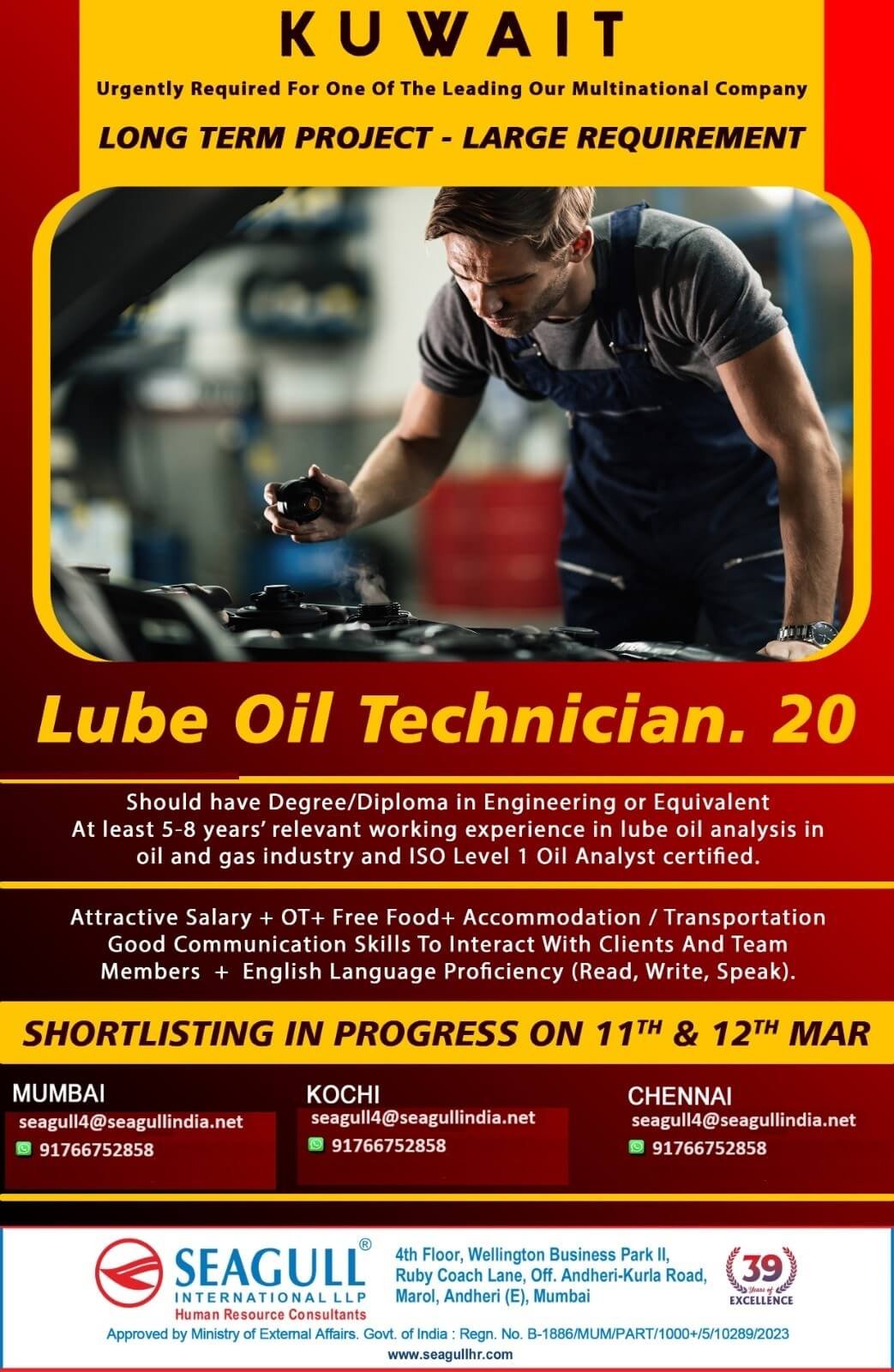 REQUIREMENTS FOR LUBE OIL TECHNICIAN FOR KUWAIT