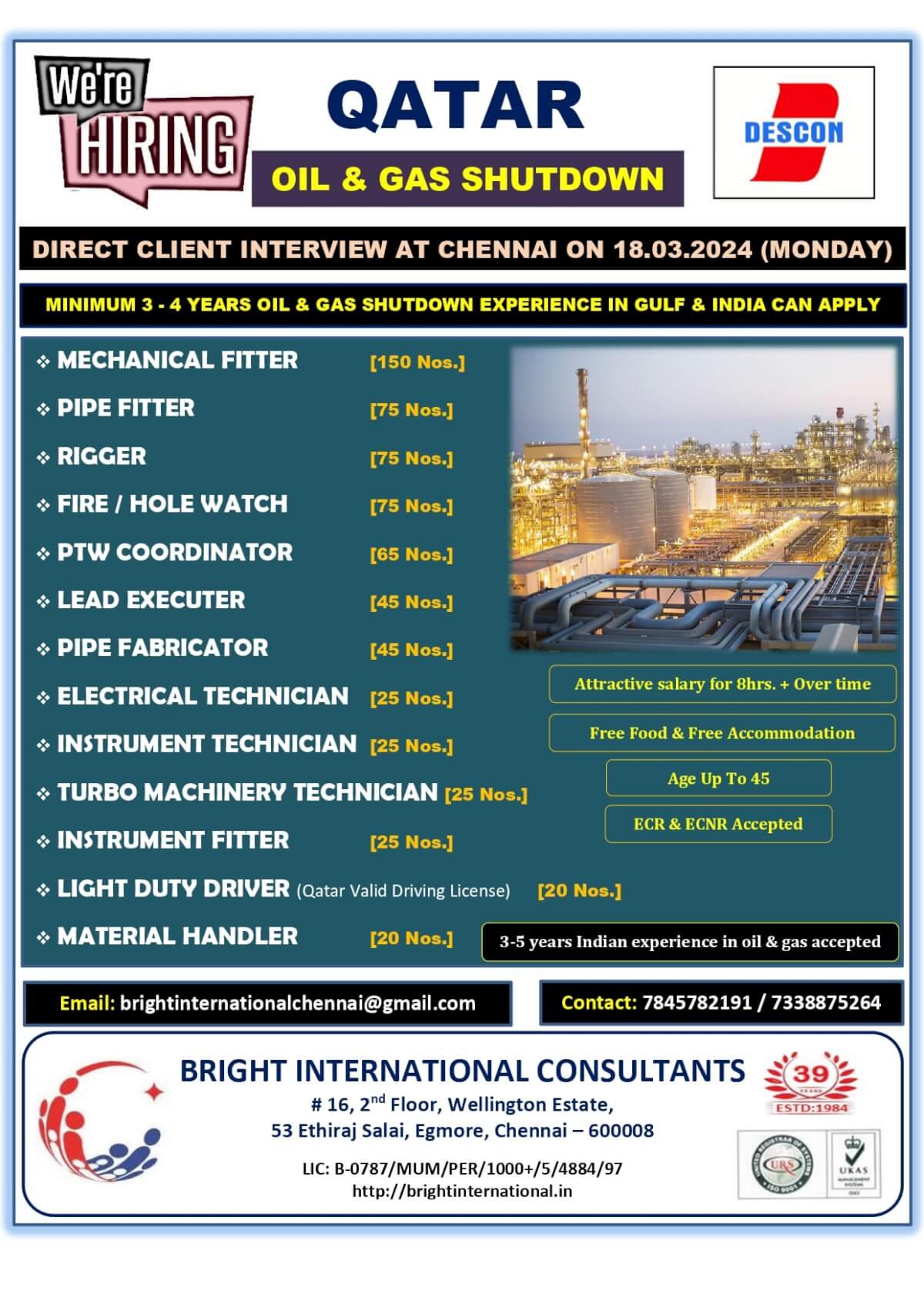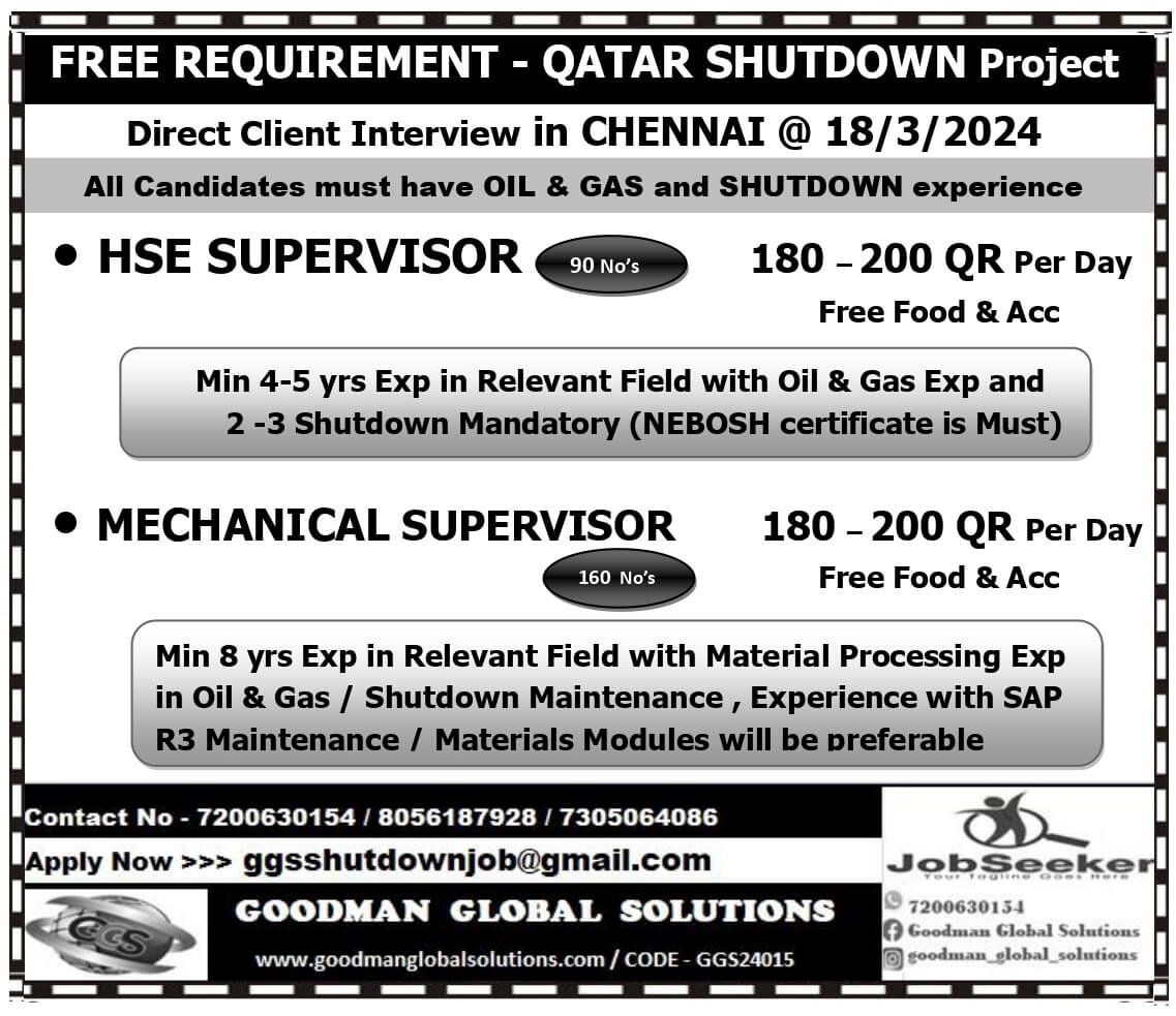 FREE REQUIREMENT – QATAR SHUTDOWN Projects