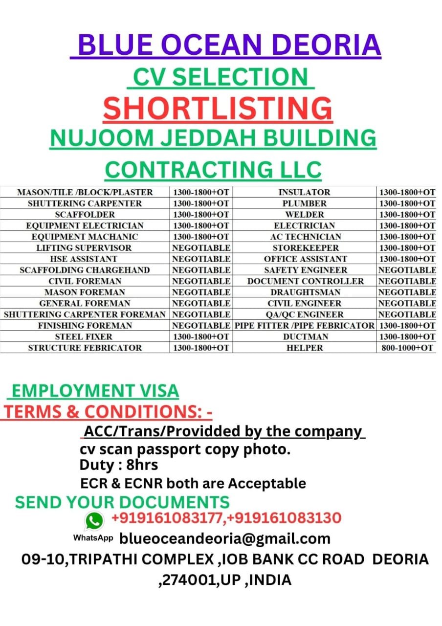 CV SELECTION SHORTLISTING NUJOOM JEDDAH BUILDING CONTRACTING LLC