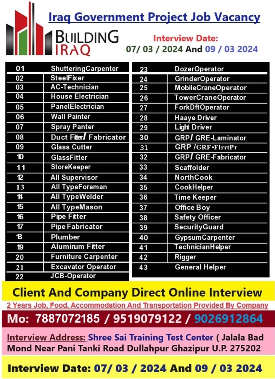 Iraq Government Project Job Vacancy Interview Date: 07/03 / 2024 And 09 / 03 2024 BUILDING IRAQ