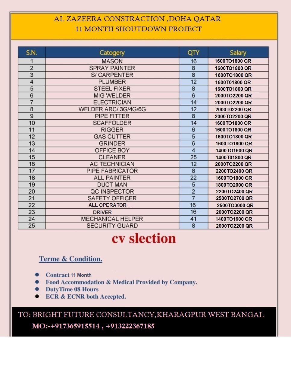 AL ZAZEERA CONSTRACTION,DOHA QATAR 11 MONTH SHOUTDOWN PROJECT