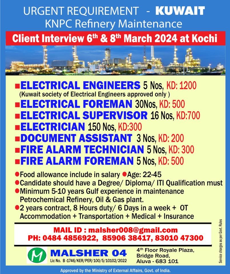 Jobs In Kuwait – Knpc Refinery Maintenance Job