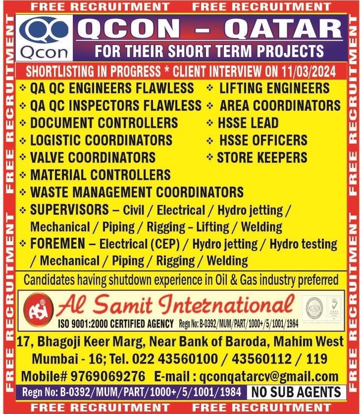Free Recruitment Qcon Qatar Jobs – Short Term Projects