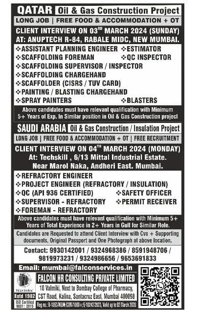 Saudi Arabia & Qatar – Oil & Gas Construction Jobs