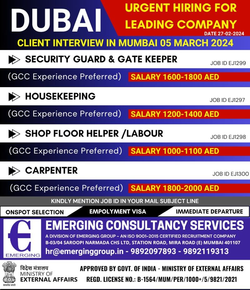 URGENTLY REQUIRED FOR UAEEMARATALOULA GRDUPEamrat Aloula(Facility Management)FINAL FACETO FACE CLIENT INTERVIEW AT OUR OFFICE JAMSHEDPUR