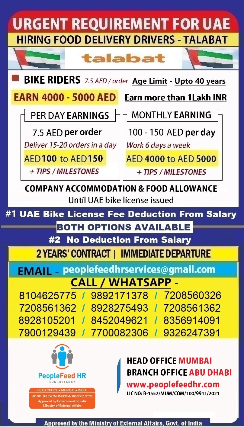 URGENT REQUIREMENT FOR BIKE RIDERS :: EMPLOYMENT VISA :: DUBAI (UAE)