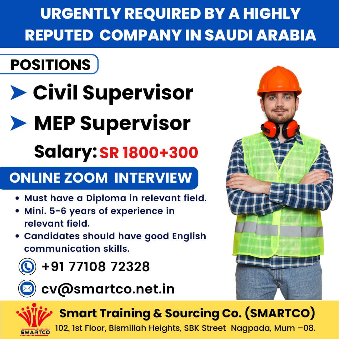 URGENTLY REQUIRED BY A HIGHLY REPUTED COMPANY IN SAUDI ARABIA
