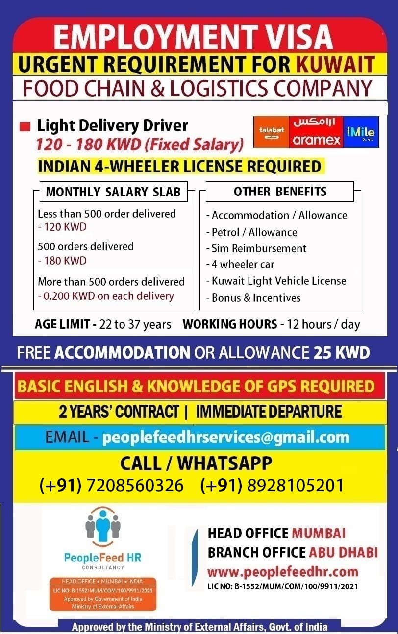 Light Delivery Driver (TALABAT, ARAMEX, IMILE, NOON, DELIVEROO)