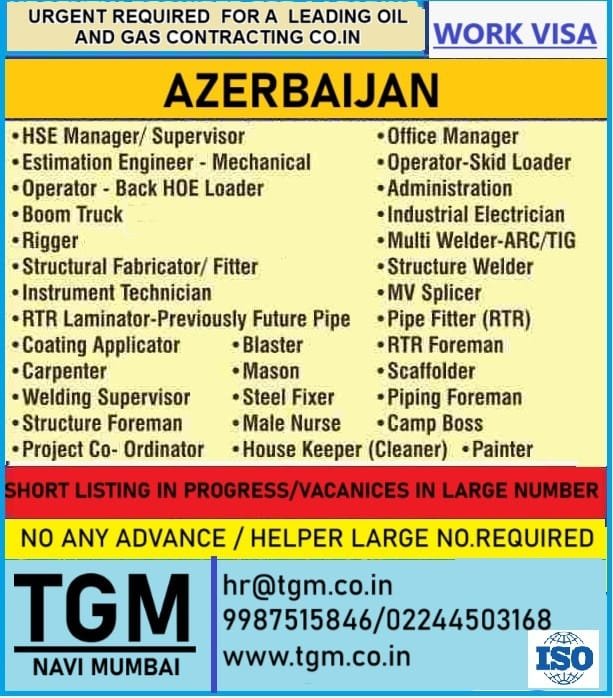 URGENT REQUIRED FOR A LEADING OIL AND GAS CONTRACTING CO.IN AZERBAIJAN WORK VISA
