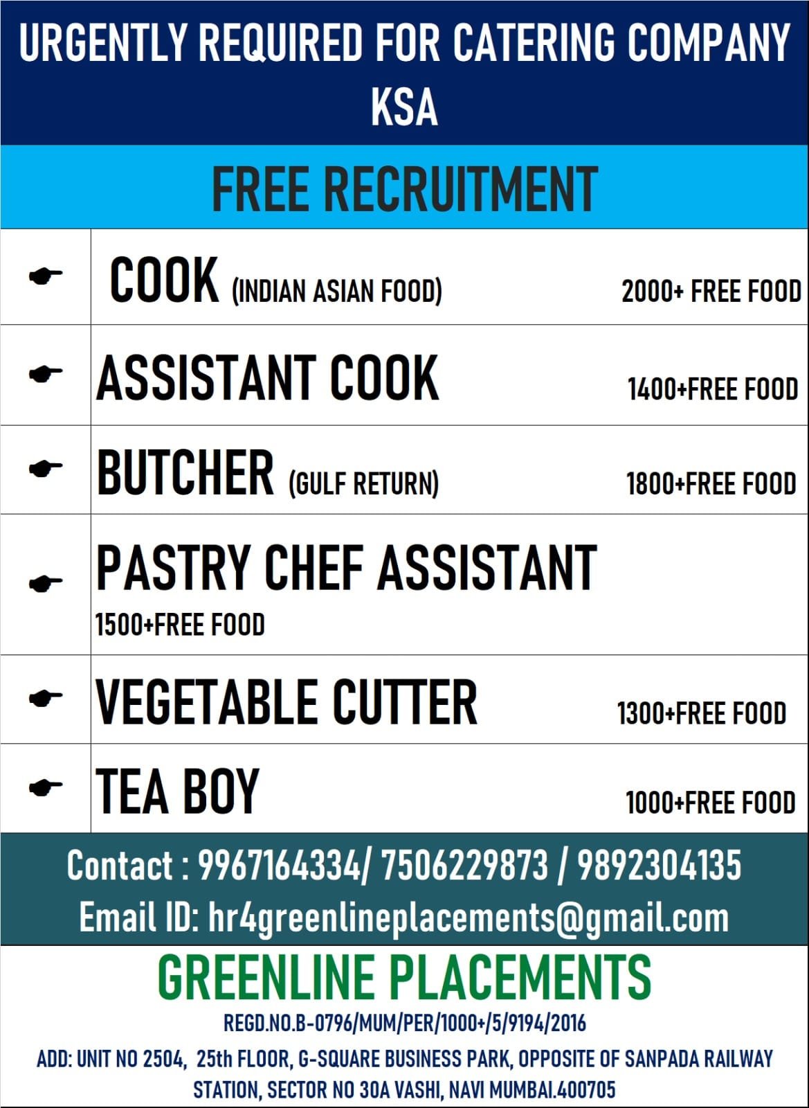 Gulf Job vacancyURGENT REQUIRED FOR CATERING COMPANY KSABy Assignment AbroadPublished on: November 6, 2024 ---Advertisement---Contact : 9967164334/ 7506229873 / 9892304135 Email ID: hr4greenlineplacements@gmail.comRelated Posts:Assignment Abroad Times 10th January 2026Urgent Requirement for DUBAI M/S EMIRATES COMPANY –…Urgent Requirement for DUBAI M/S FOURTH DIMENSION…Urgent Requirement for DUBAI M/S ALEMCO COMPANY –…URGENTLY REQD. FOR REPUTED COMPANYURGENTLY REQD. FOR REPUTED COMPANY Abroad times Assignment Abroad Assignment Abroad times Fastnaukri.com Gulf job vacancy Overseas assignment