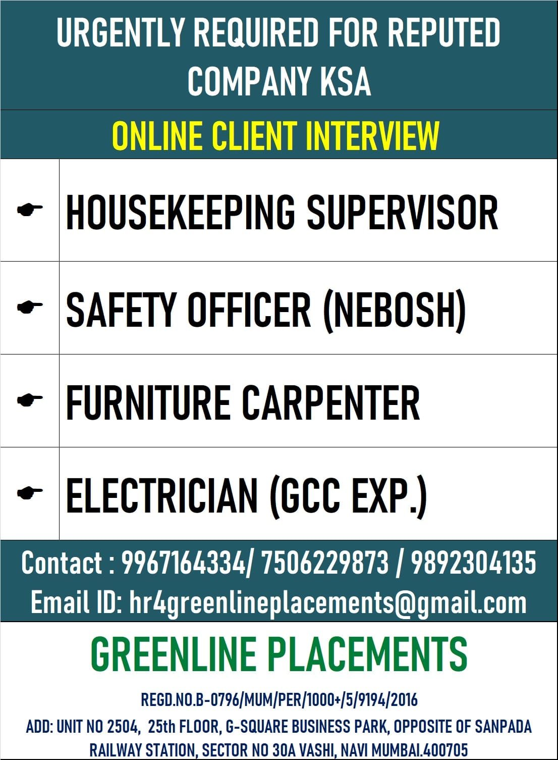 Gulf Job vacancyURGENT REQUIRED FOR REPUTED COMPANY KSABy Assignment AbroadPublished on: November 15, 2024 ---Advertisement---Contact : 99671 64334/7506229873 / 9892304135 Email ID: hr4greenlineplacements@gmail.comRelated Posts:Assignment Abroad Times 10th January 2026Urgent Requirement for DUBAI M/S EMIRATES COMPANY –…Urgent Requirement for DUBAI M/S FOURTH DIMENSION…Urgent Requirement for DUBAI M/S ALEMCO COMPANY –…URGENTLY REQD. FOR REPUTED COMPANYURGENTLY REQD. FOR REPUTED COMPANY Abroad times Assignment Abroad Assignment Abroad times assignment abroad times mumbai assignment abroad times paper assignment abroad times pdf assignment abroad times today assignment abroad times today pdf assignment abroad times today pdf download Fastnaukri.com Gulf job vacancy Overseas assignment