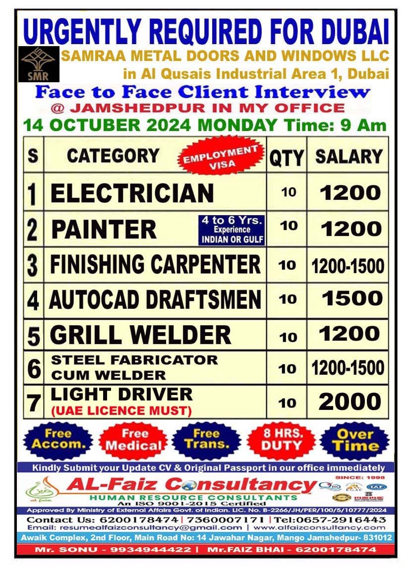 Interested candidates can contact and send their CVs to: resumealfaizconsultancy@gmail.com