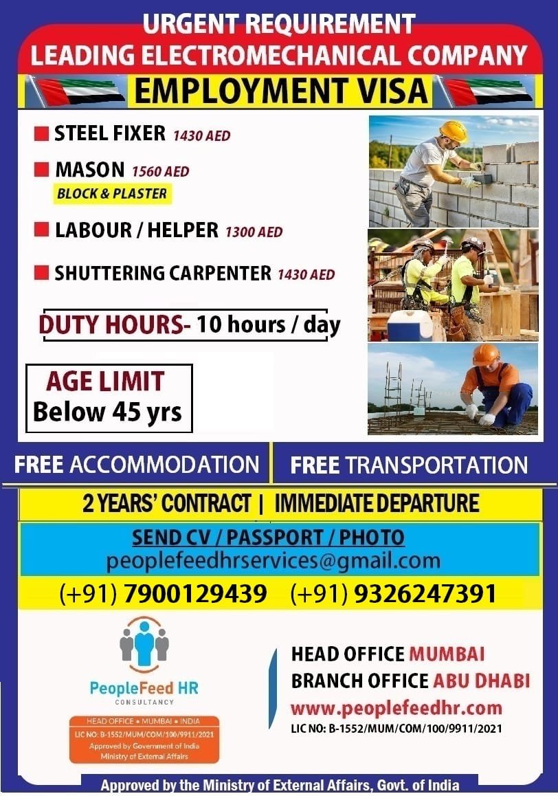 URGENT REQUIREMENT FOR ELECTROMECHANICAL COMPANY ::-:: EMPLOYMENT VISA ::-:: ONLINE INTERVIEW