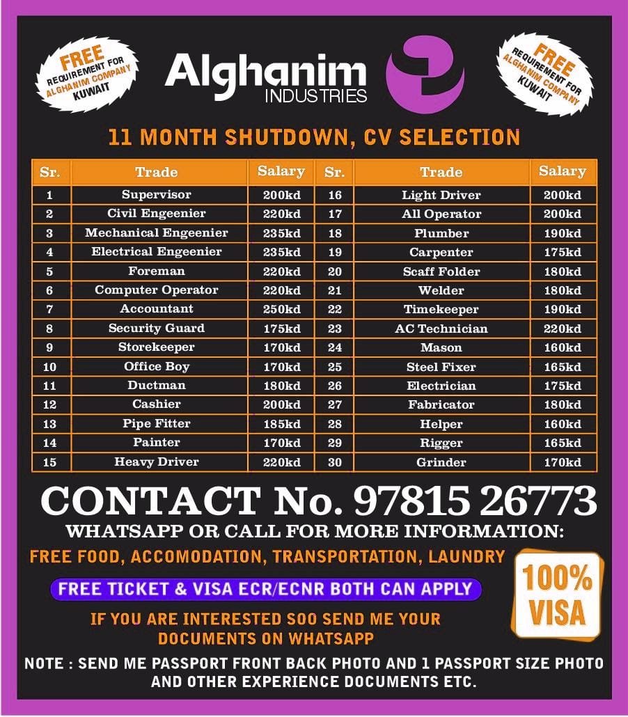 Urgent Requirement For Kuwait Cv Selection