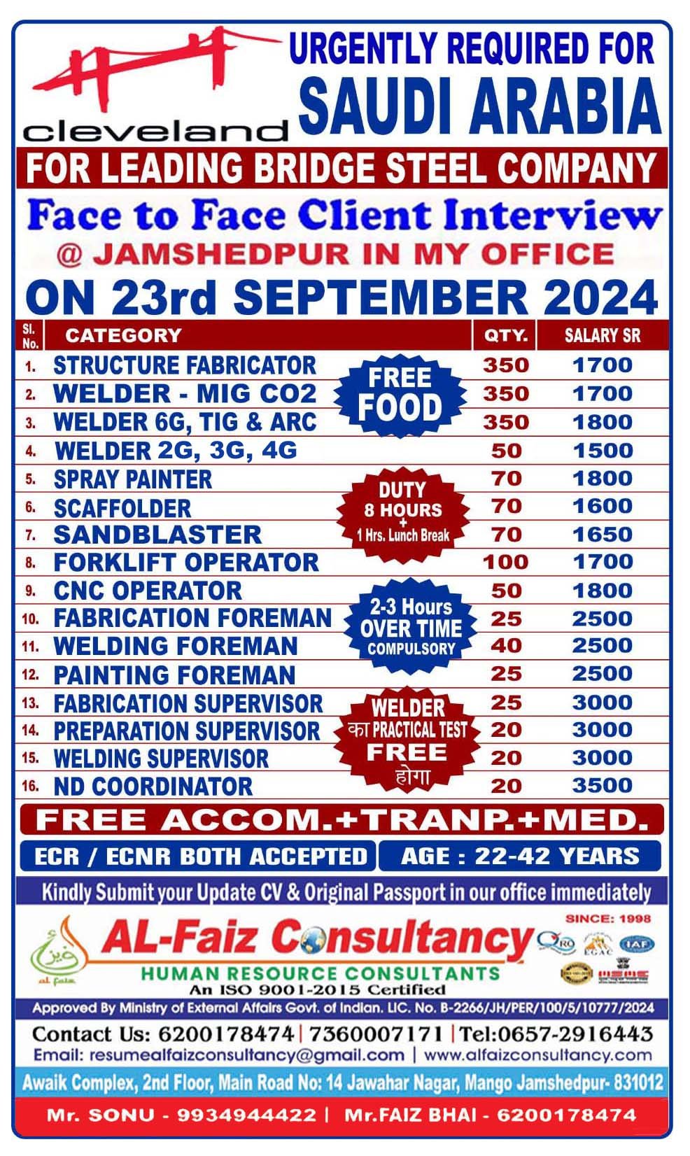 Interested candidates can contact and send their CVs to: resumealfaizconsultancy@gmail.com