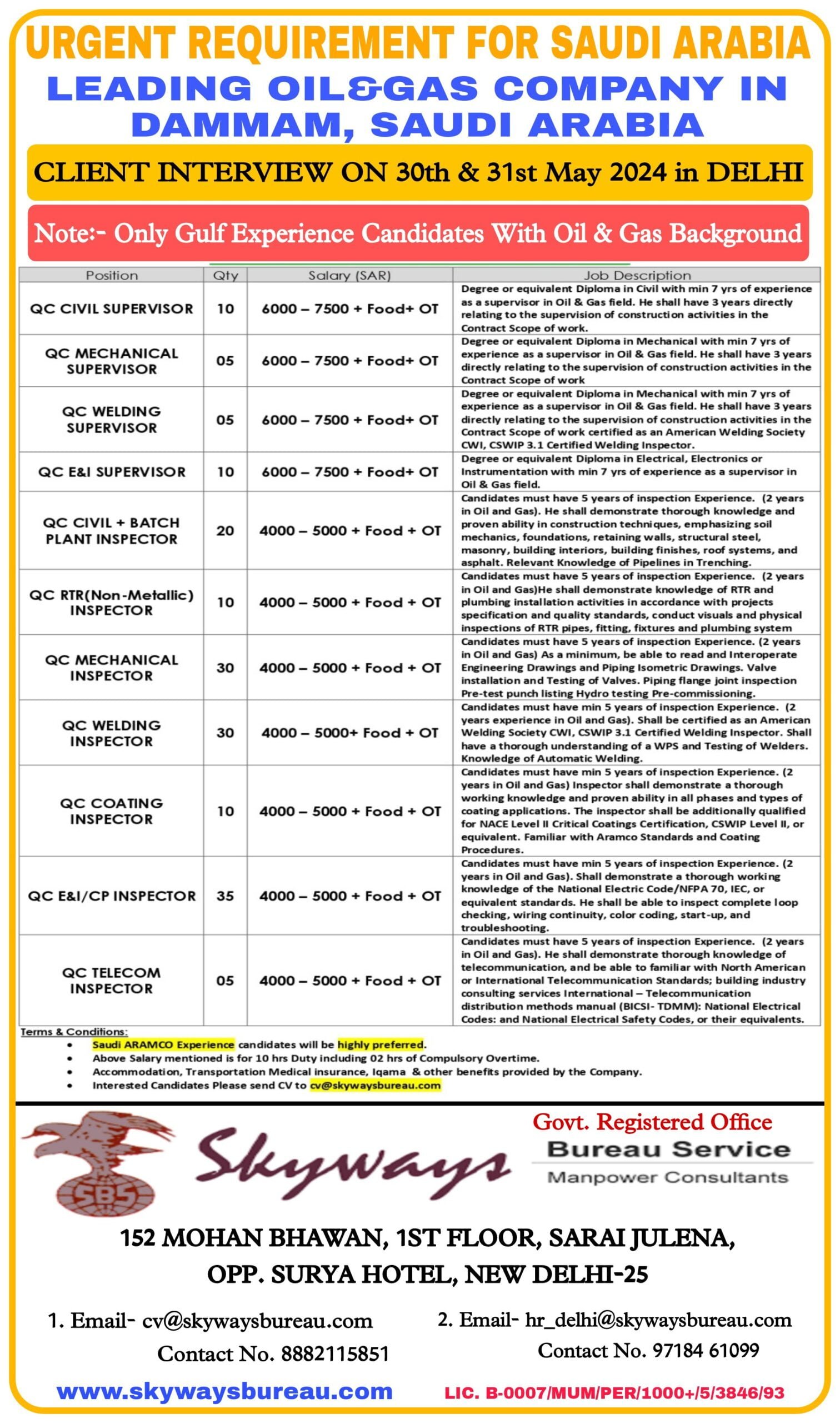 2. Email- hr_delhi@skywaysbureau.com