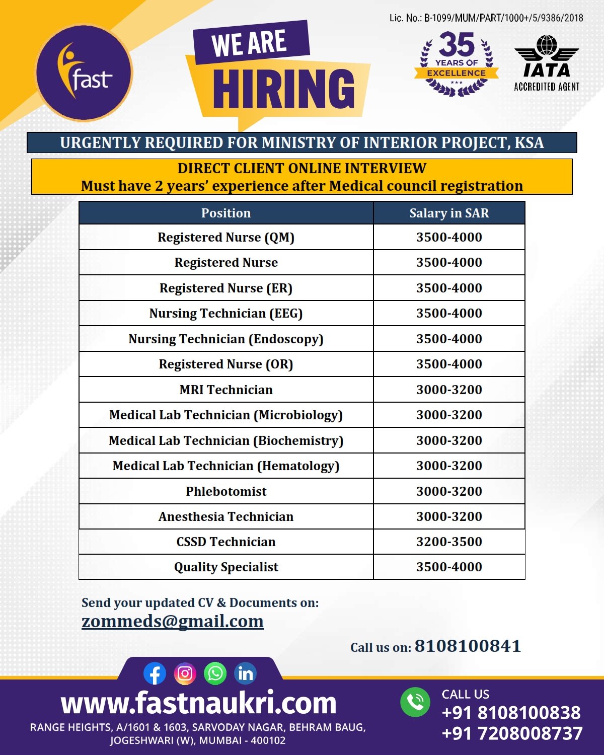 URGENTLY REQUIRED FOR SAUDI ARABIA