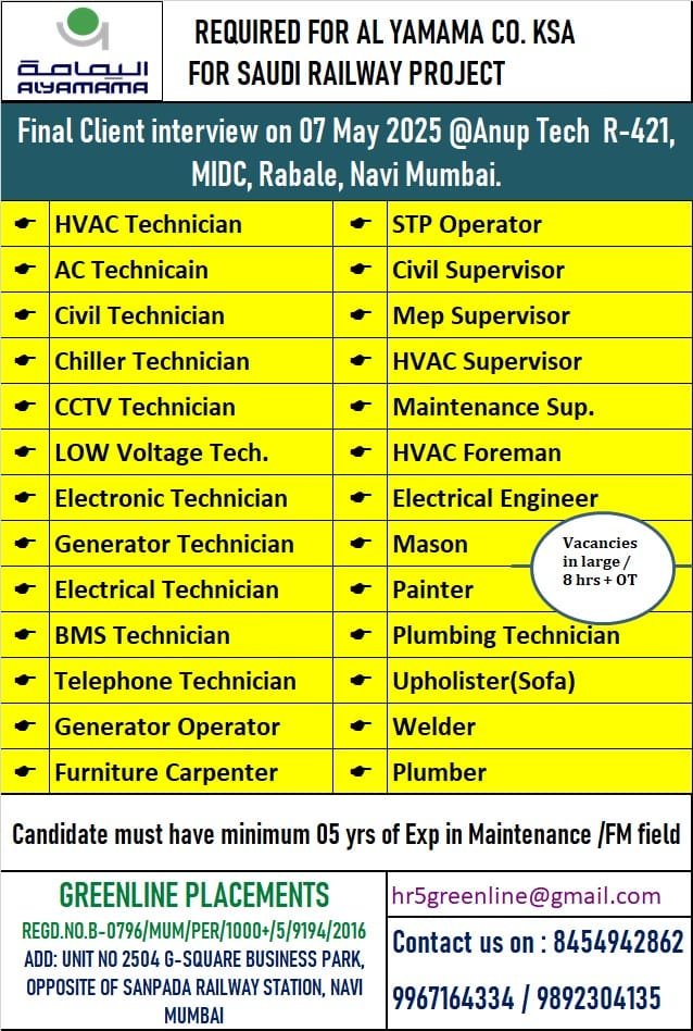 Gulf Job vacancyURGENTLY REQUIRED FOR REPUTED COMPANY KSABy Assignment AbroadPublished on: May 1, 2025 ---Advertisement---Contact : 8454942862 / 9967164334 / 9892304135 Email ID: hr5greenline@gmail.comRelated Posts:Assignment Abroad Times 10th January 2026Urgent Requirement for DUBAI M/S EMIRATES COMPANY –…Urgent Requirement for DUBAI M/S FOURTH DIMENSION…Urgent Requirement for DUBAI M/S ALEMCO COMPANY –…URGENTLY REQD. FOR REPUTED COMPANYURGENTLY REQD. FOR REPUTED COMPANY Abroad times Assignment Abroad Assignment Abroad times assignment abroad times mumbai assignment abroad times paper assignment abroad times pdf assignment abroad times today assignment abroad times today pdf assignment abroad times today pdf download Fastnaukri.com Gulf job vacancy Overseas assignment