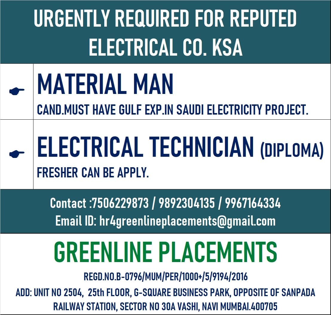 Contact : 7506229873 / 9892304135 / 9967164334 Email ID: hr4greenlineplacements@gmail.com
