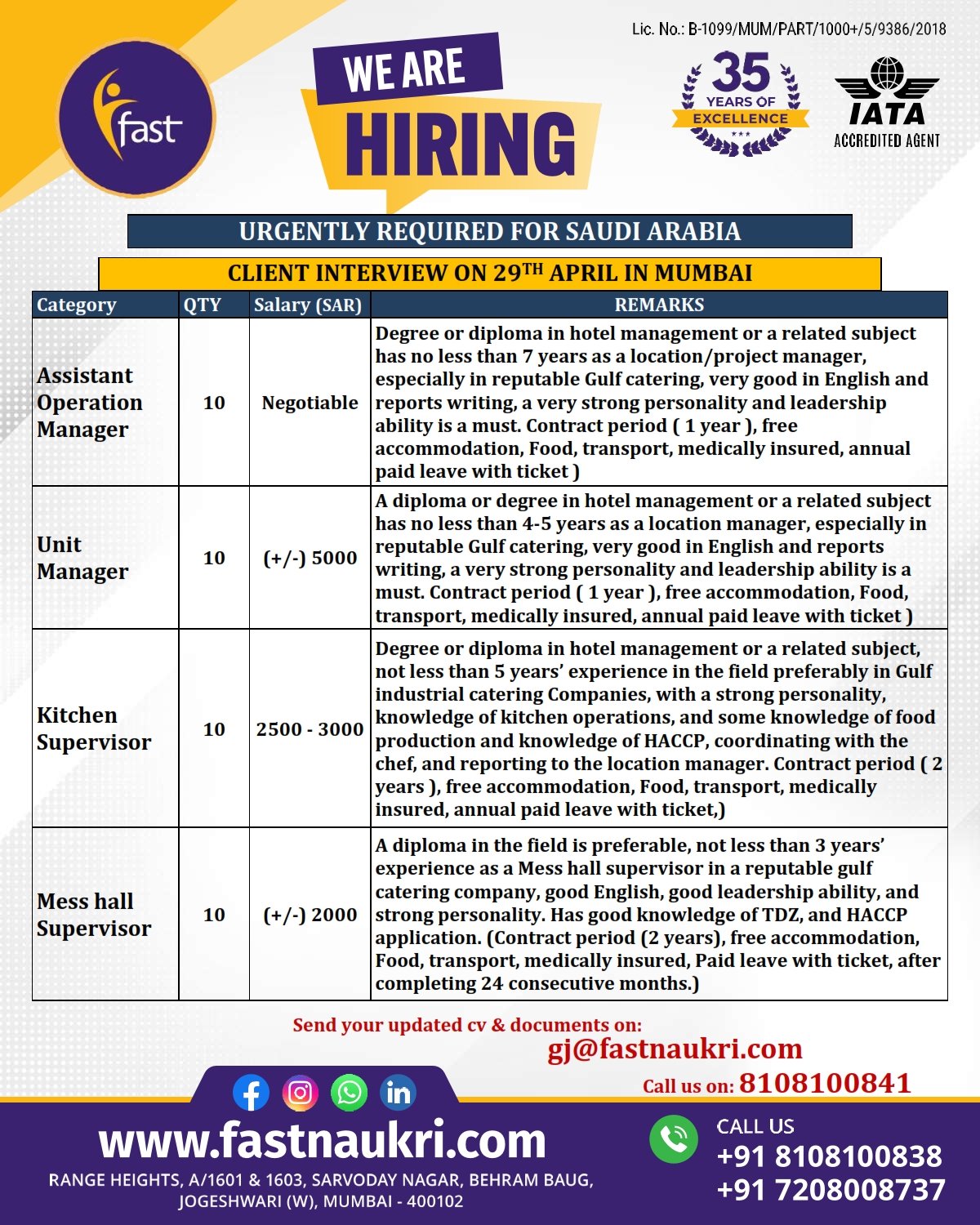URGENTLY REQUIRED FOR SAUDI ARABIA