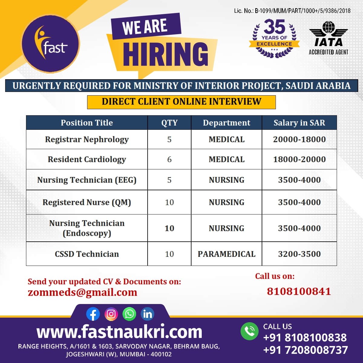 Fastnaukri.com is currently hiring for multiple positions in Saudi Arabia. We are conducting direct client online interviews for qualified candidates.