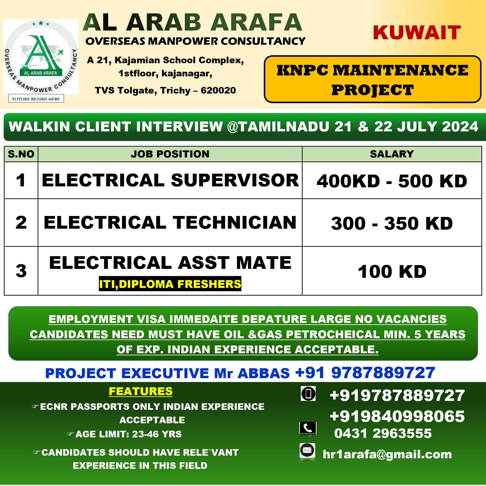 walkin direct client interview in Tamilnadu@21/22 july 2024